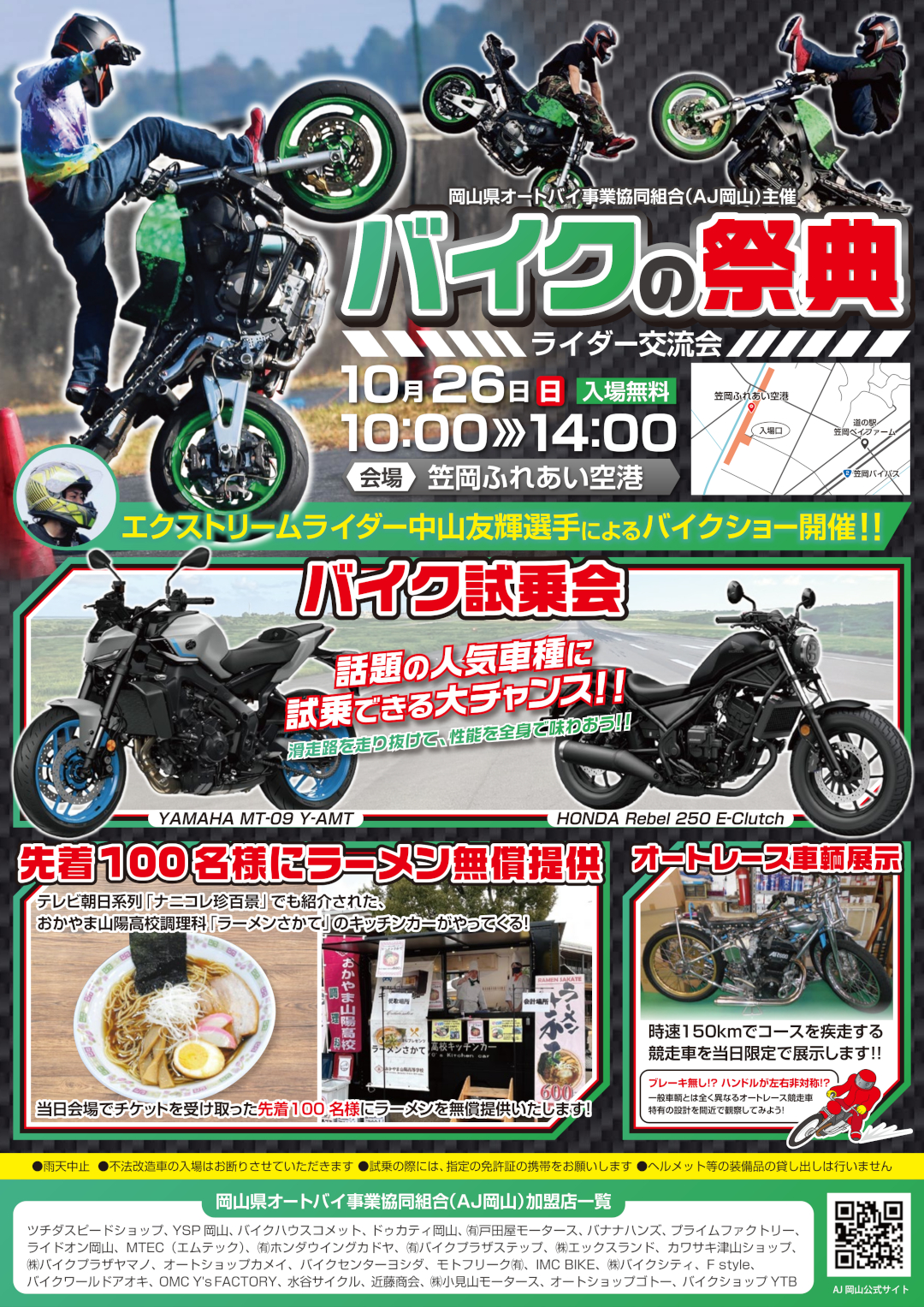 2025年 10月26日(日) 岡山県オートバイ事業協同組合主催 「バイクの祭典」開催!
